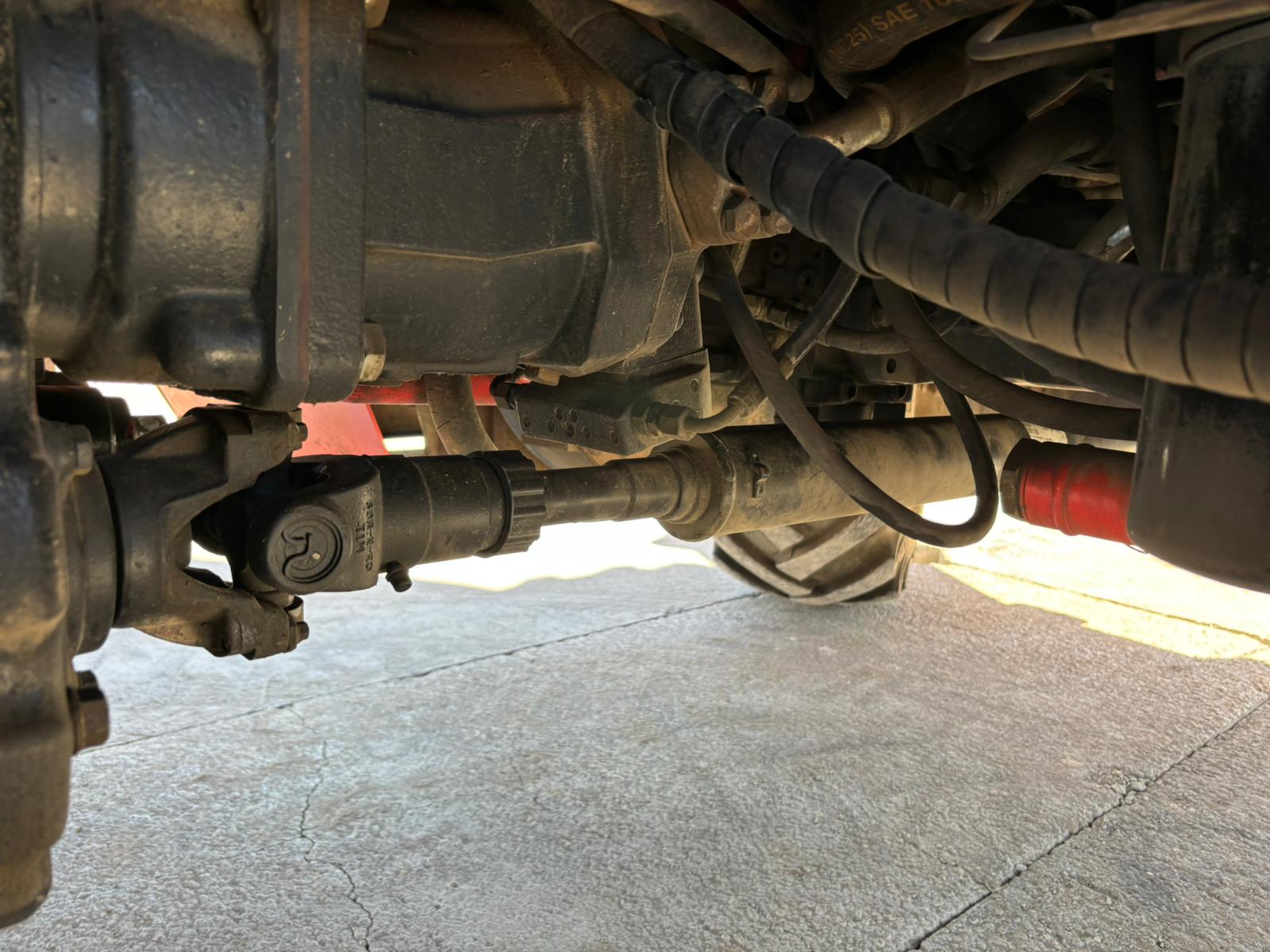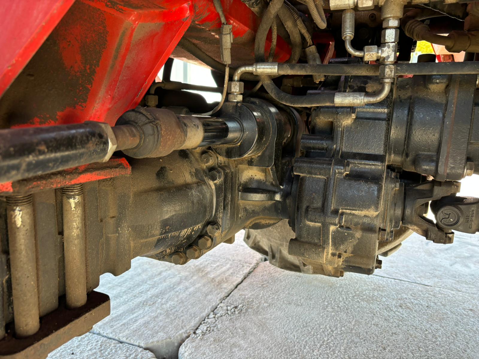 Keine Undichtigkeiten an Motor, Achsen oder Hydraulik.